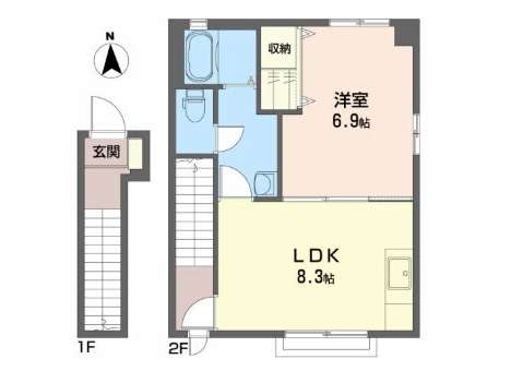 | 詳細間取 | 1LDK (洋6.9帖×1、LDK8.3帖) | ||