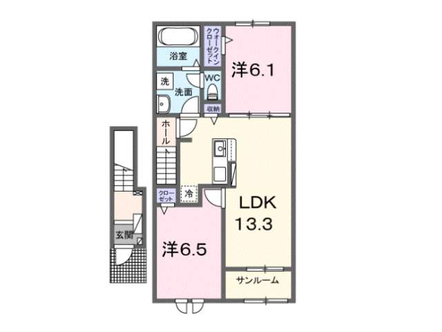 | 詳細間取 | 2LDK (洋6.1帖×1、洋6.5帖×1、LDK13.3帖) | ||