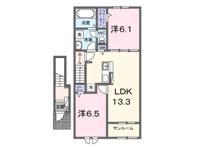 | 詳細間取 | 2LDK (洋6.1帖×1、洋6.5帖×1、LDK13.3帖) | ||